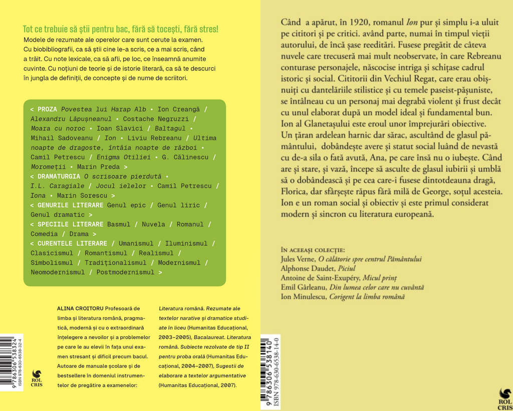 Pachet BAC fara stres 2025 Alina Croitoru. Ion Liviu Rebreanu, Rolcris