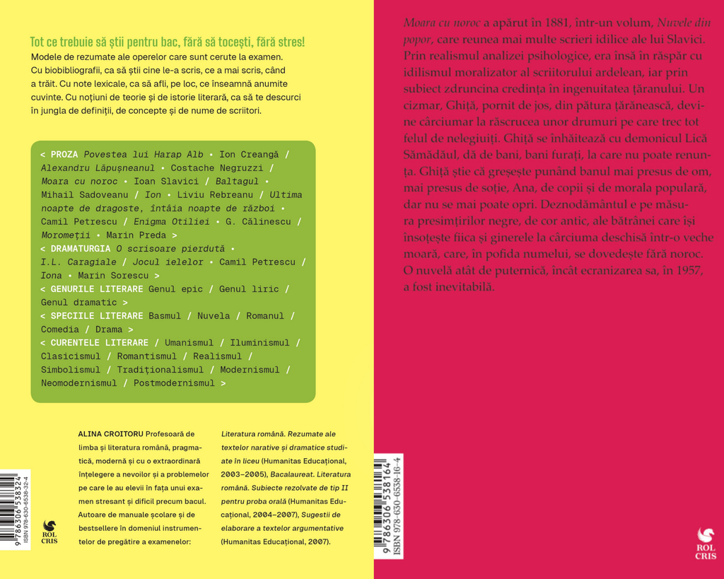 Pachet Bac fara stres 2025 Alina Croitoru. Moara cu noroc Ioan Slavici, Rolcris