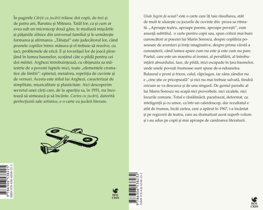Pachet Cartea cu jucarii Tudor Arghezi. Unde fugim de acasa Marin Sorescu, Rolcris