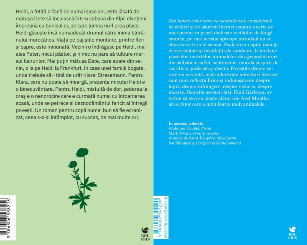 Pachet Heidi fetita muntilor Johanna Spyri. Din lumea celor care nu cuvanta Emil Garleanu, Rolcris. Pachet La Medeleni Ionel Teodoreanu. Legendele Olimpului Zeii Alexandru Mitru, RolcrisPachet Heidi fetita muntilor Johanna Spyri. Din lumea celor care nu cuvanta Emil Garleanu, Rolcris