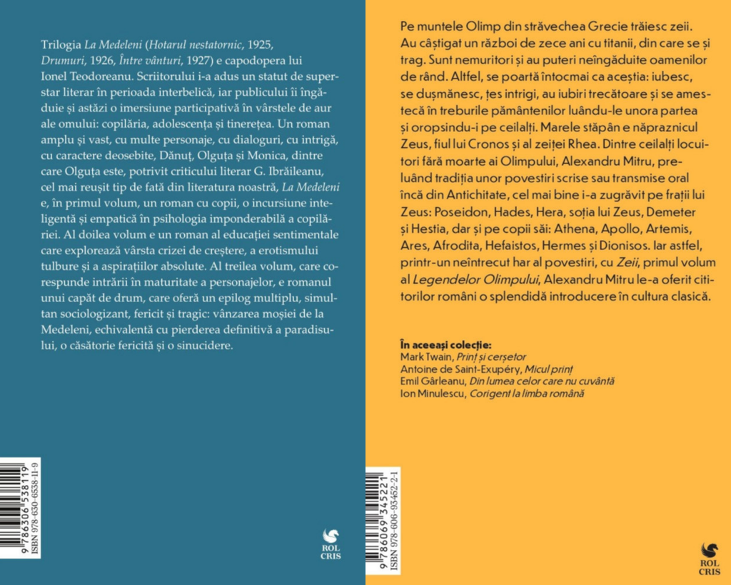 Pachet La Medeleni Ionel Teodoreanu. Legendele Olimpului Zeii Alexandru Mitru, Rolcris. Pachet Legendele Olimpului Eroii Alexandru Mitru. Moara cu noroc Ioan SlaviciPachet La Medeleni Ionel Teodoreanu. Legendele Olimpului Zeii Alexandru Mitru, Rolcris